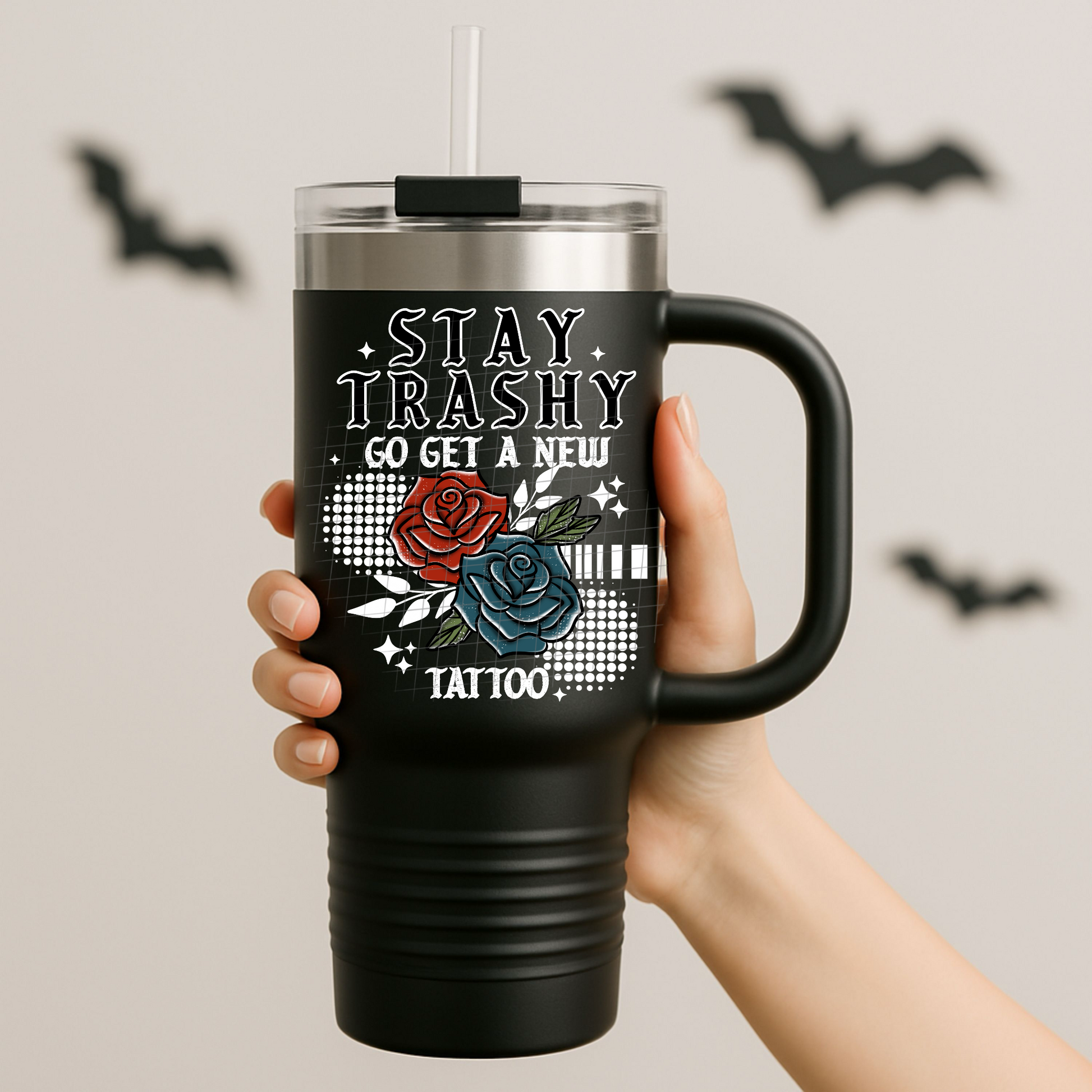 Stay trashy white UV DTF